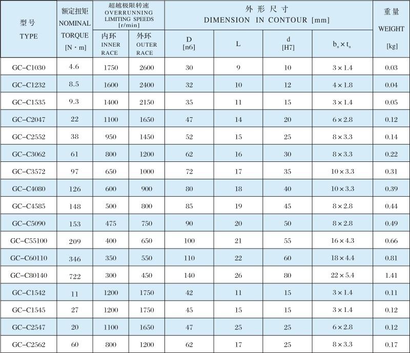 GC-C滾柱式單向離合器